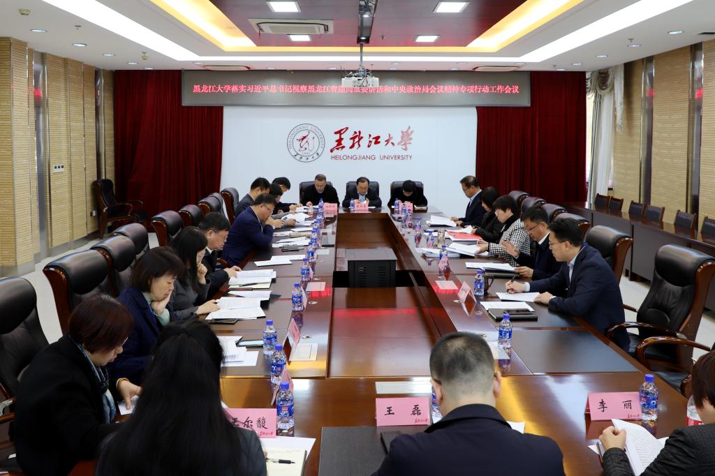 为贯彻落实习近平总书记视察黑龙江省期间重要讲话和中央政治局会议精神,11月1日,bat365在主楼A802会议室召开专项行动工作会议。校长王敬波,党委副书记李君明,副校长于文秀、钟卫东、井立强出席会议,相关职能部门和学院的负责同志参加会议。王敬波主持会议。