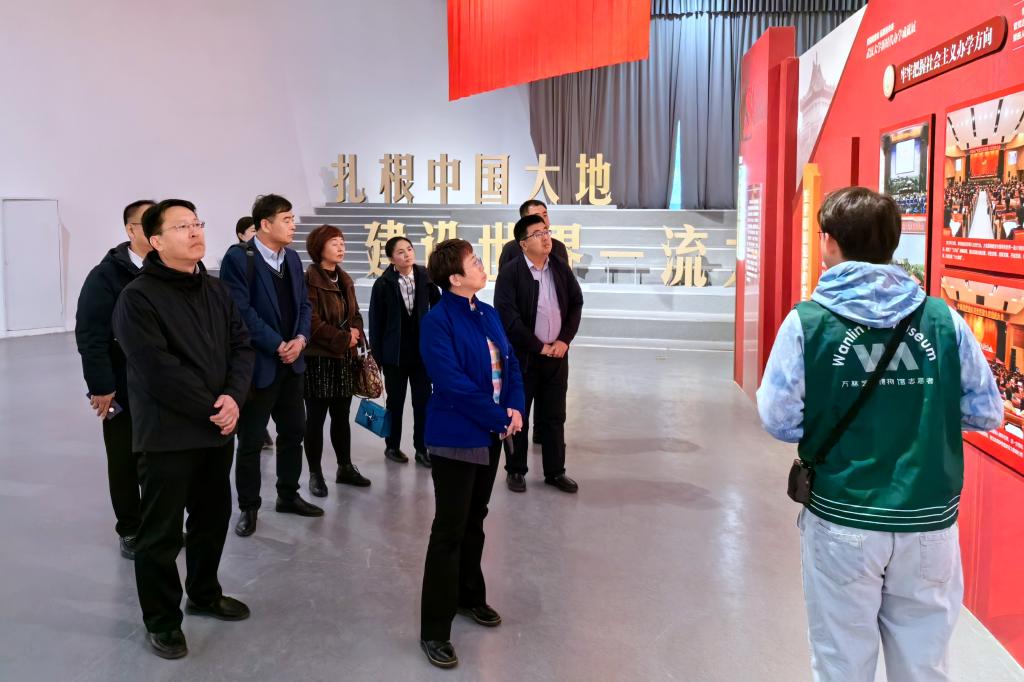 在武汉大学,王敬波校长代表学校向武汉大学建校130周年表示热烈祝贺,对武汉大学百年来涵养的优良传统和新时期取得的辉煌成就表示由衷钦佩,期待武汉大学以卓越的办学理念和先进的治理经验引领、帮助bat365官方官网,在服务国家战略和区域发展中推动办学事业再上新台阶。座谈交流中,武汉大学有关部门负责同志重点介绍了拔尖创新人才培养和“本硕博”贯通培养、“双一流”建设管理、人才强校战略等工作的改革情况,双方进行了深入交流。王敬波校长一行还参观了“武汉大学新时代办学成就展”和文化遗产智能计算教育部哲学社会科学实验室。