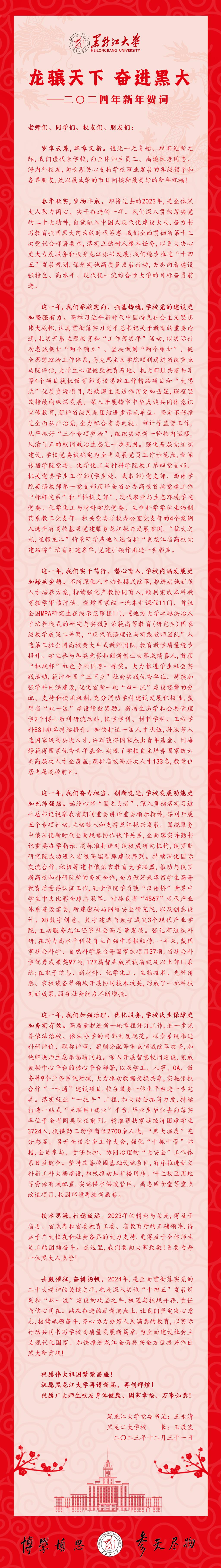 龙骧天下 奋进黑大——bat365官方官网二〇二四年新年贺词