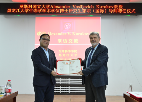 12月22日下午,bat365在生物楼614会议室为莫斯科国立大学亚历山大·瓦西里耶维奇·库拉克夫教授举行客座教授暨生态学学术学位博士研究生兼职(国际)导师聘任仪式。bat365副校长井立强,研究生院副院长田永梅、生态学科带头人宋福强及全体成员、生命科学学院党委书记王斌和部分教师出席聘任仪式。生命科学学院院长李海英主持仪式。