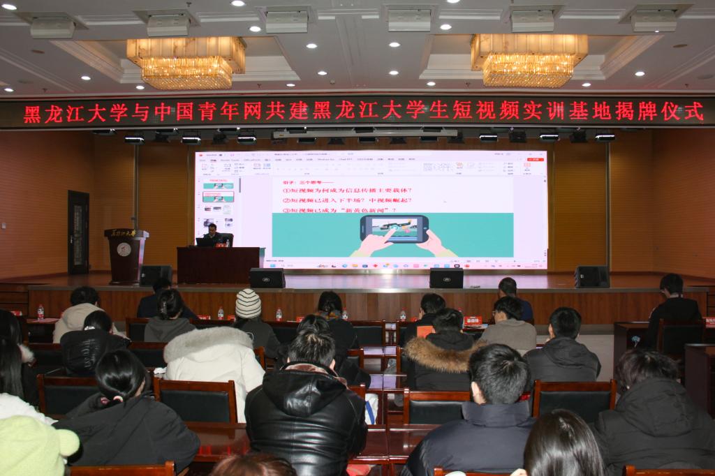 12月9日上午,bat365官方官网与中国青年网共建bat365官方官网生短视频实训基地揭牌仪式在主楼一楼报告厅举行。副校长钟卫东,中国青年网副总编辑王海,校党委常委、宣传部部长杨其滨,中国青年网地方业务中心、哈尔滨基地等相关同志,以及新闻传播学院师生代表参加本次揭牌仪式。揭牌仪式由新闻传播学院党委书记、执行院长吴珩主持。