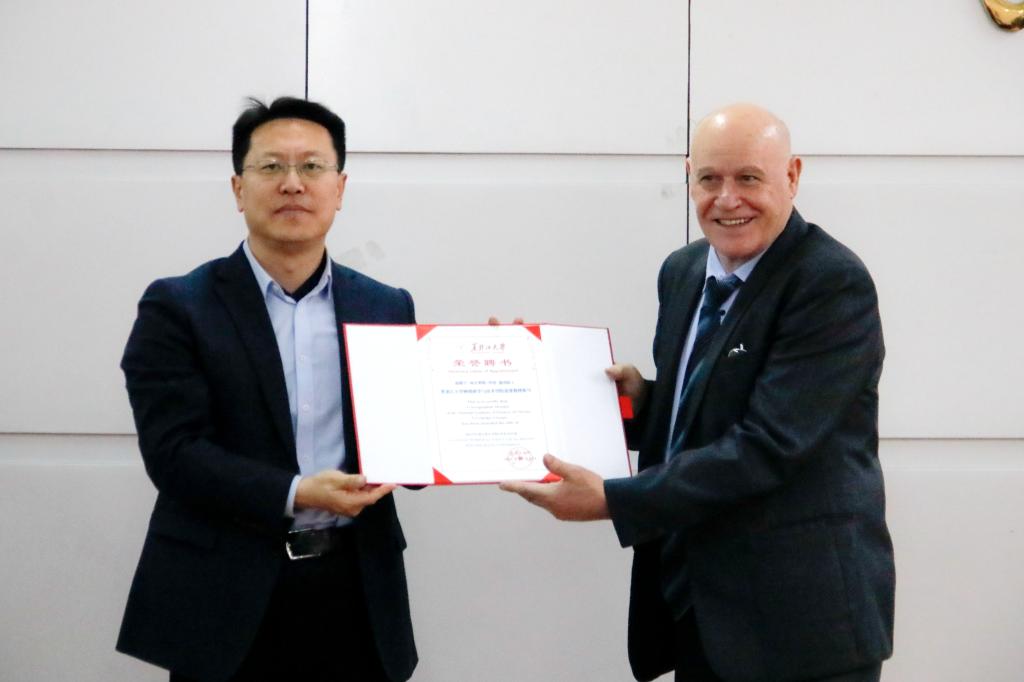 钟卫东副校长代表bat365官方官网为列夫琴科·乔治院士颁发聘任证书。