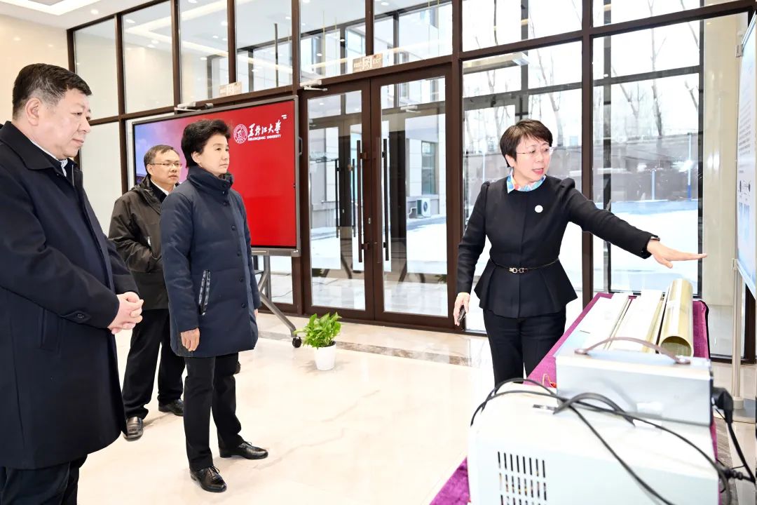 梁惠玲走进新质生产力大楼,听取科技攻关和成果转化情况介绍。她对黑大科研项目团队与企业开展合作,推动学校教育科技资源优势与社会资源优势深度融合,实现共建共赢的做法给予肯定;希望学校发挥科教优势、人才优势,加快关键核心技术攻关,释放科技成果溢出效益,扩大科技成果产业化规模。调研期间,梁惠玲强调,要发挥科技创新增量器作用,推动创新链和产业链紧密对接、深度融合,加快科技成果落地转化,培育发展新动能。要强化“政产学研用”一体推进,突出企业在科技成果转化中的核心作用,坚持企业出题、科研解题、市场阅卷,常态化开展校地、校企科技成果转化对接活动,使企业成为大学科技成果转化基地,使大学成为企业科技研发中心。要用好用活大学大院大所各类科技园、先研院、孵化器等平台,建好建强各类产业园区,健全完善“政校企”合作联动机制,加速科技成果孵化,促进更多科技成果转化为现实生产力。要加强人才培养,完善人才评价体系,激发各类人才创新活力和潜力,提升自主创新能力。要加强统筹规划、协调联动,创新方式方法,搭建校地、校企科技成果对接合作平台,推动科技成果与市场主体对接,着力强链补链延链,加快构建具有我省特色优势的现代化产业体系。