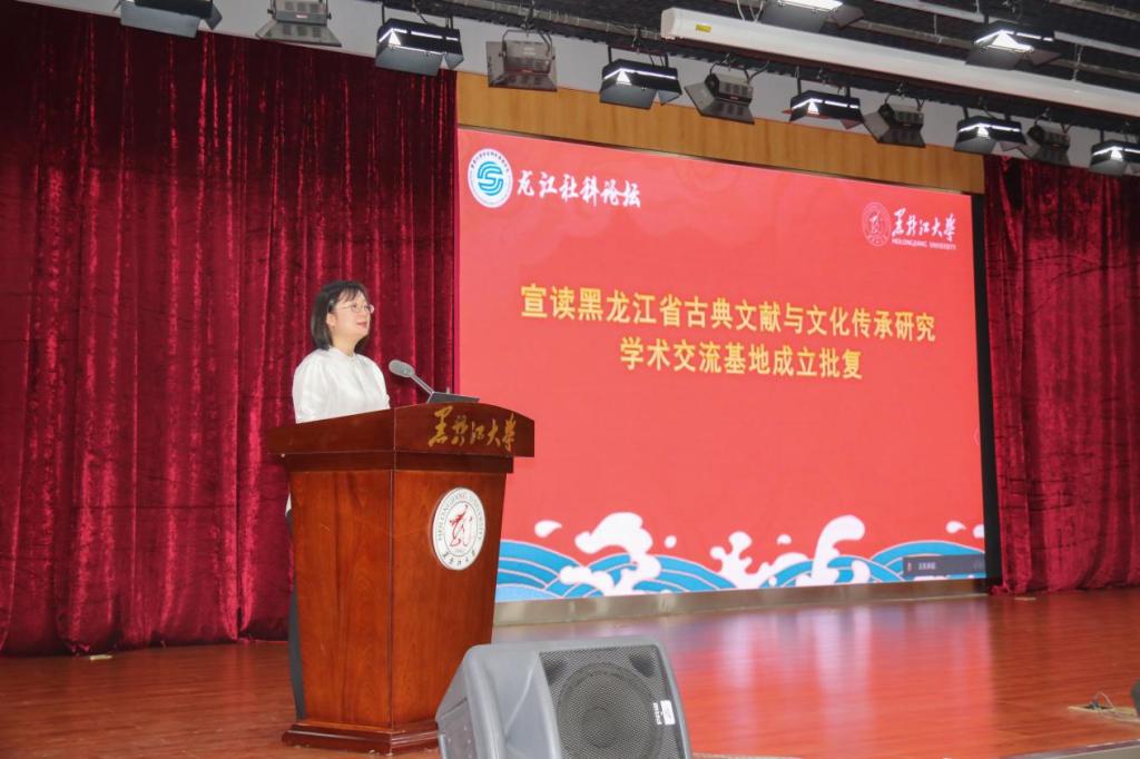 马琳代表黑龙江省社科联宣读了黑龙江省古典文献与文化传承研究学术交流基地成立批复。她表示,社会科学学术交流基地是省社科联打造的集学术建设、理论研究、学术交流、成果转化、咨政服务、普及推广为一体的协同创新平台。在bat365官方官网建设古典文献与文化传承基地,是贯彻落实习近平文化思想,服务龙江振兴发展的具体举措。省社科联将凝聚相关力量,和bat365官方官网共同支持和推动基地建设和发展。