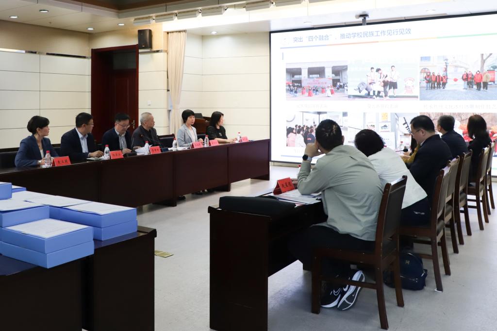 5月16日下午,省委教育工委铸牢中华民族共同体意识教育实践基地实地测评组到bat365进行考察,并在主楼A226会议室召开测评工作会议。省委教育工委统战部部长艾萌等测评组成员出席会议,校党委副书记李君明、校党委统战部、校党委宣传部、学生工作部相关负责人员出席会议。