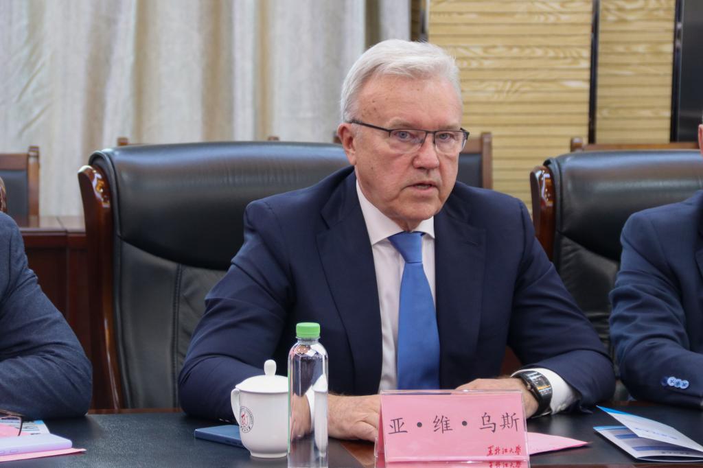 西伯利亚联邦大学总裁乌斯对联邦大学的发展情况、特色专业和学科优势进行了介绍,他希望未来同中国企业和高校建立更多联系,取得更好的合作成果。校长鲁缅采夫表示,学校在语言学、历史等人文学科领域的合作已有一定基础,希望未来在法学、工程、物流等新领域开展更多的人才培养合作项目,与bat365官方官网在先进技术开发、新产业园的建设等方面探讨合作的可能性。