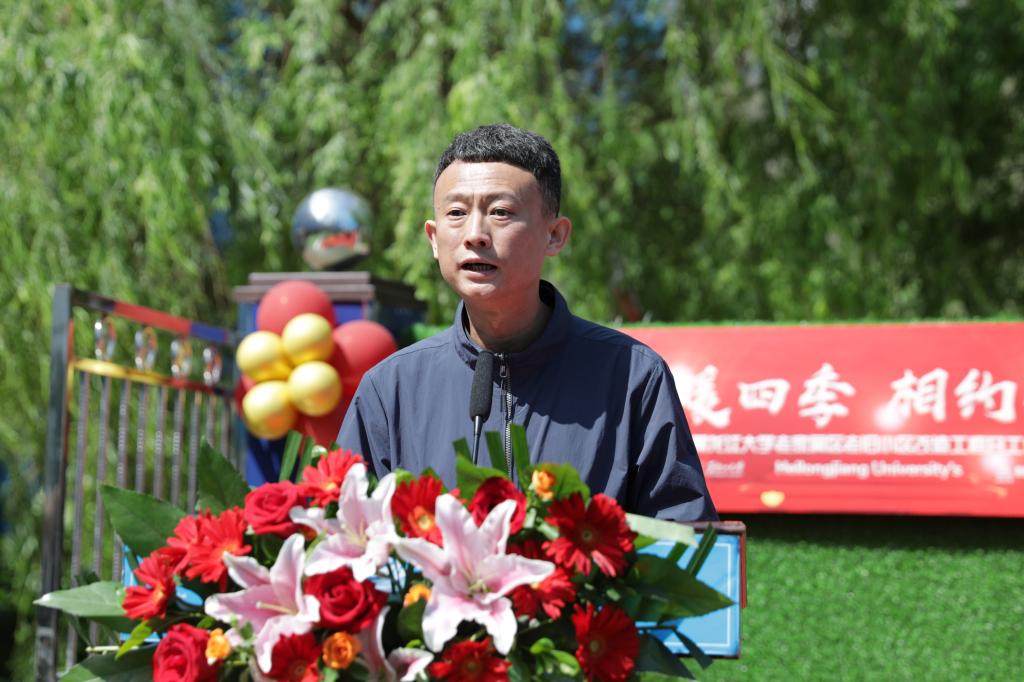 李卓在仪式上表示,学校一直高度重视民生工作,针对老家属区存在诸多问题,学校做了大量工作来回应居民关切。此次老旧小区改造工程是落实市委、市政府相关举措、提升城市形象的重要行动,也是彻底解决老家属区问题的重要契机,对居民切身利益和学校发展意义重大。他指出该工程于2022年5月启动申报,经各级领导积极沟通和多方推进,于2023年10月获南岗区政府批准列入旧改计划,政府投入近亿元经费,实施楼体和配套基础设施等方面改造,预计工期至今年10月末。改造完成后将由属地政府主导引进高水平物业公司。他强调,各相关单位应加强沟通协同,严格按标准规范施工,建立质量监督机制,同时也呼吁广大老师、家属和居民积极参与,提出意见建议,共同将老家属区旧改工程变成精品、样板和民心工程。