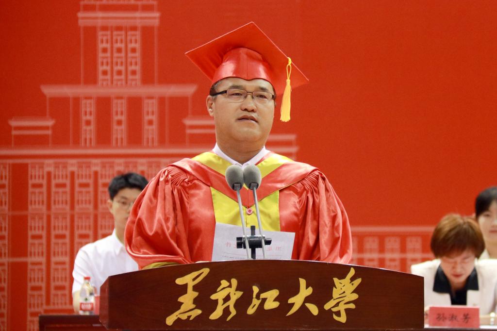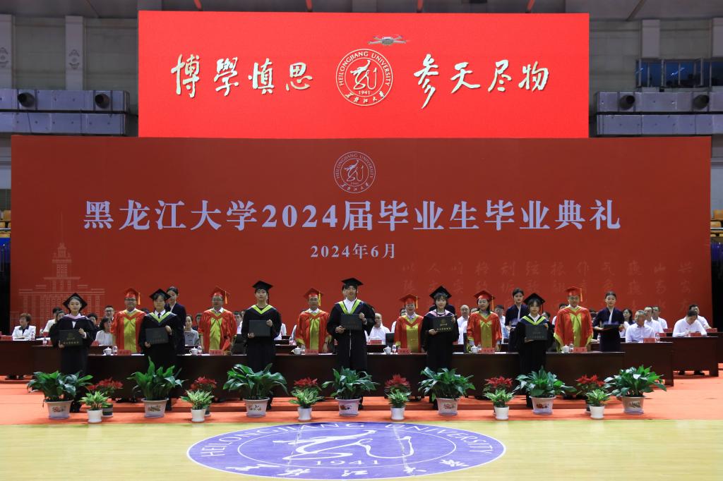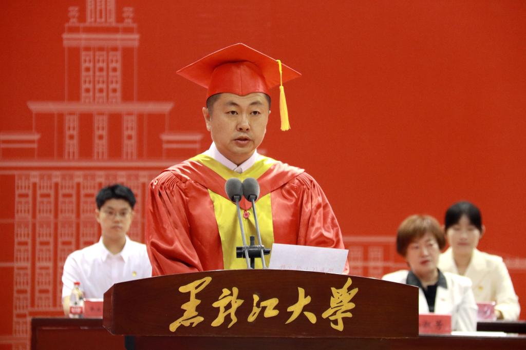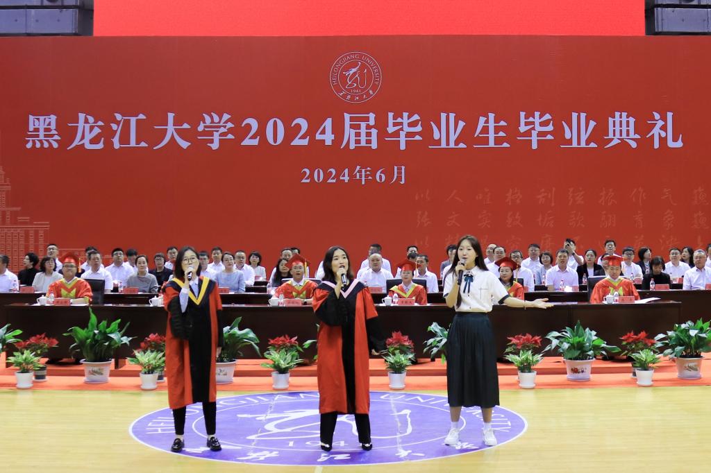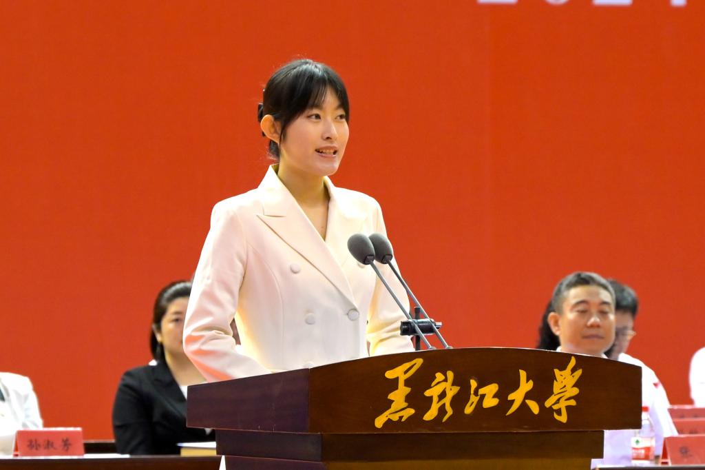 在校生代表、建筑工程学院2021级学生刘菲向2024届的学长学姐们表达了热烈的祝贺和真挚的祝福,并感谢在校期间学长学姐们的引导和帮助。她表示,全体在校生将继续传承弘扬黑大精神,努力钻研,勤于实践,勇于创新,一同肩负起为母校争光、为社会奉献、为祖国添彩的时代重任。