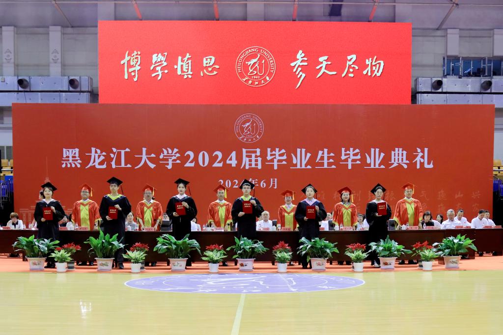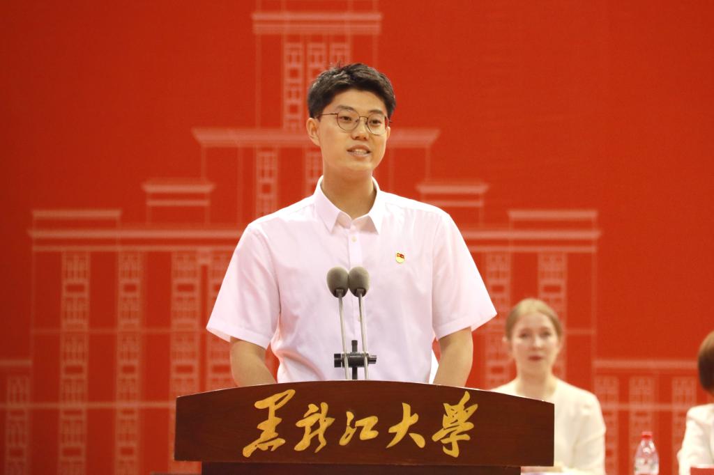 计算机科学技术学院、软件学院2024届毕业生郭曜旸代表全体毕业生向母校和老师的悉心栽培,亲人和同学的默默支持致以崇高的敬意和衷心的感谢。他深情回忆了在黑大丰富多彩的校园生活,并表示未来将继续用脚步丈量祖国大地,用内心感应时代脉搏,在青春的赛场上拼出最好成绩。