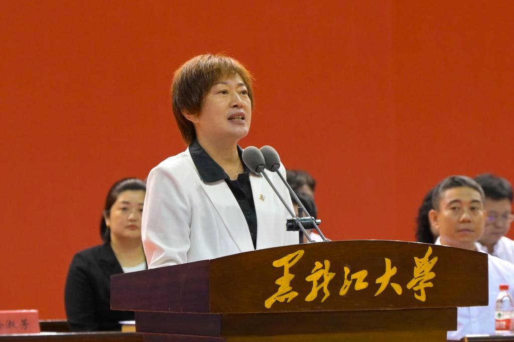 bat3652006级校友、北安市委宣传部副部长太译彬代表校友发言。她深情回顾了自己在黑大的求学时光,与同学们分享了自己的人生经历。希望同学们志存高远、脚踏实地,坚持不懈、勇于挑战,将个人理想融入国家理想、个人事业融入国家事业,做有担当、有理想的青年一代。