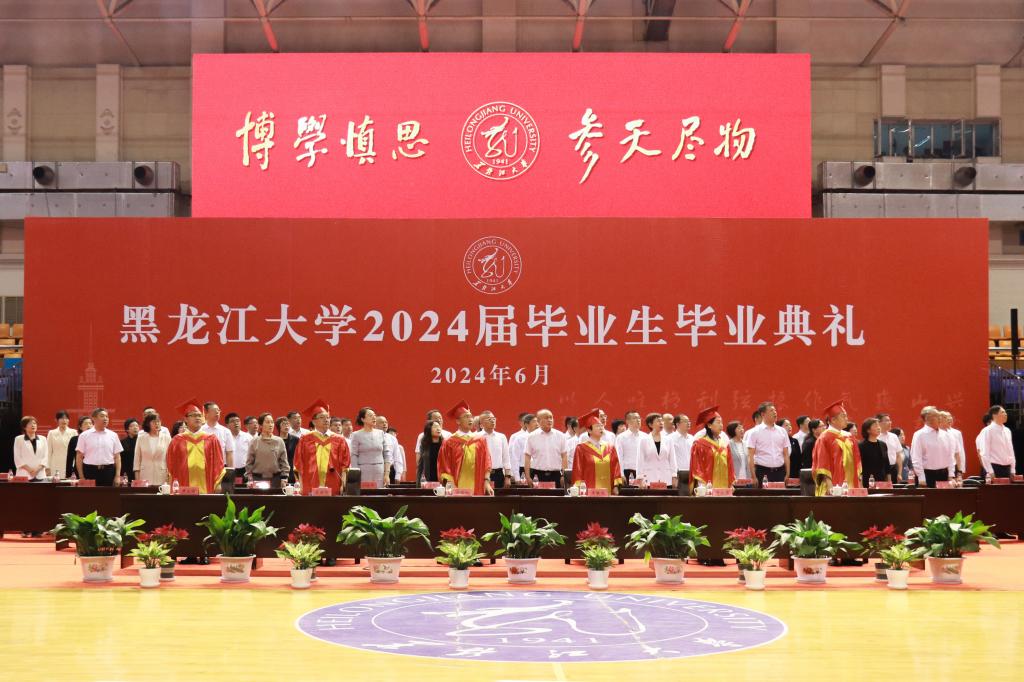 在庄严的国歌和激扬的校歌声中,国旗和校旗冉冉升起,2024届毕业生毕业典礼正式开始。