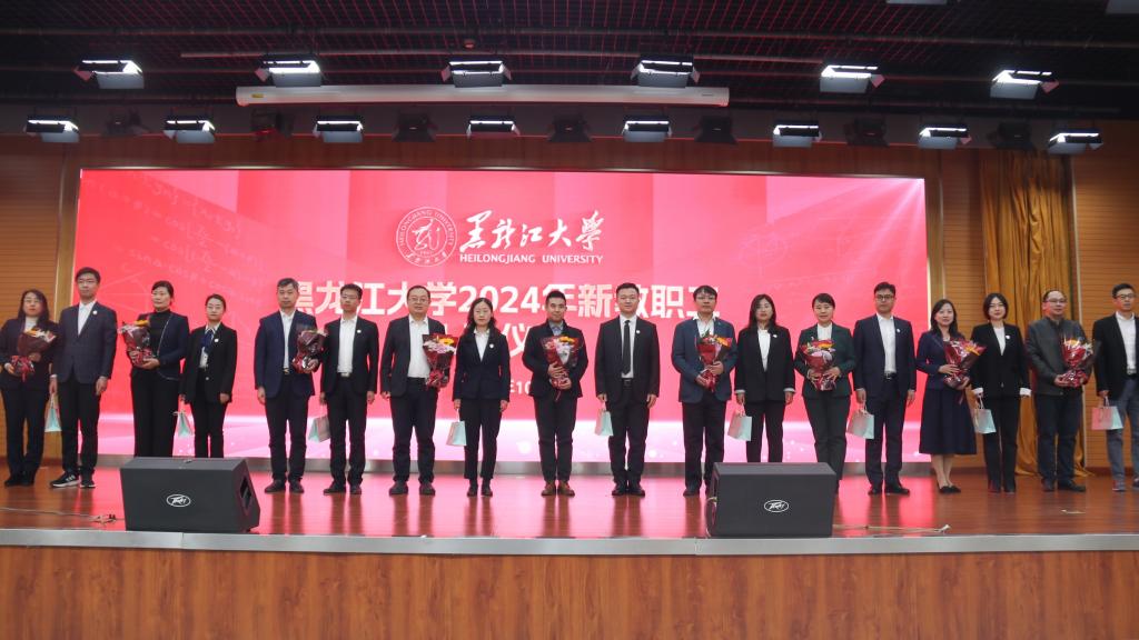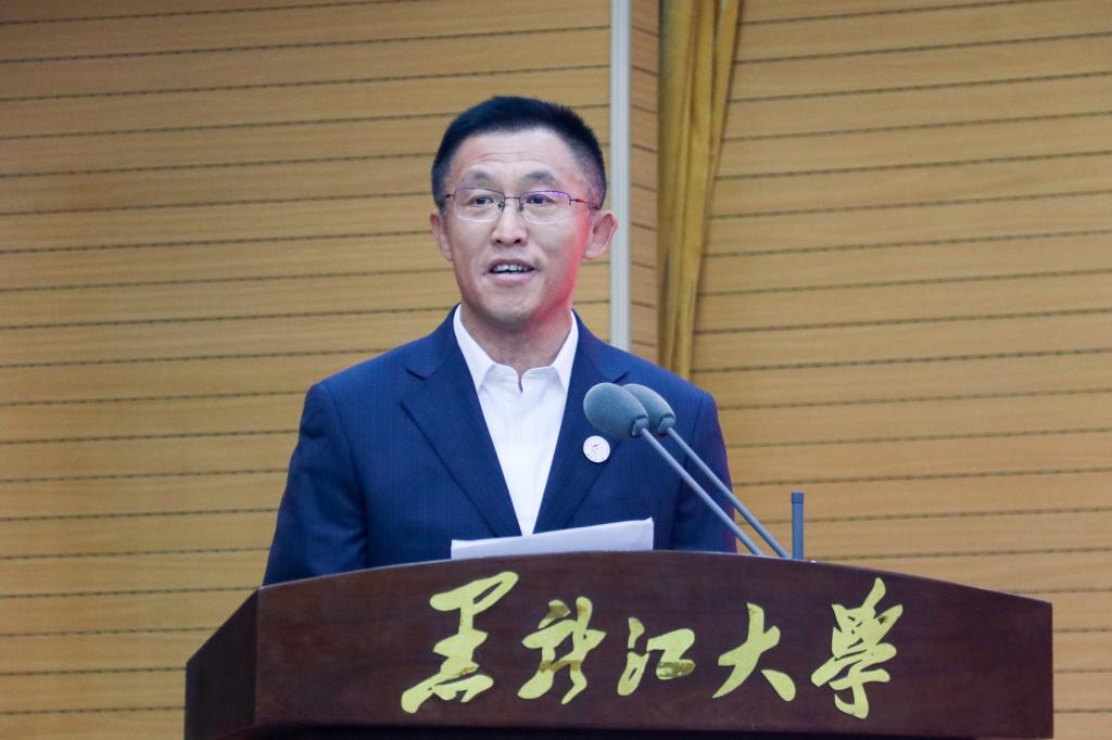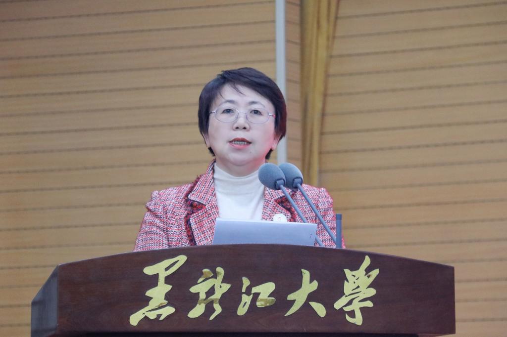 校长王敬波致辞。她代表学校向全体新教职工表示热烈的欢迎和美好的祝福。为帮助新教职工更好地了解学校,王敬波从三方面介绍了“黑大印象”:一是黑大有红色基因,有家国情怀,有不断坚守的行稳致远、弦歌不辍的价值追求。历经83年艰难求索,学校始终与国家民族命运休戚与共,未来学校将继续履行历史责任,肩负时代使命;二是黑大有良师大家,有勇毅学子,有不断积淀的躬耕不辍、追求卓越的意志品格。学校坚守为党育人、为国育才的初心使命,黑大教师也始终以“择一事,终一生”的职业操守和工匠精神,发挥自身最大的力量与能量;三是黑大有人文气息,有自由气质,有不断蕴蓄的尊师重教、崇智尚学的精神家园。学校坚持人才强校战略,为建设专业化高素质教师队伍布局谋篇,形成了“人人皆可成才、人人尽展其才、人人享受尊重”的蔚然校风。王敬波表示,全体新教职工既要做传道授业解惑的教书匠,还要做用心用情用爱的管理者,更要做学生为学为事为人的大先生。希望新教职工在bat365官方官网的“大舞台”演绎“大梦想”,成就更美好的自己,收获更精彩的人生。