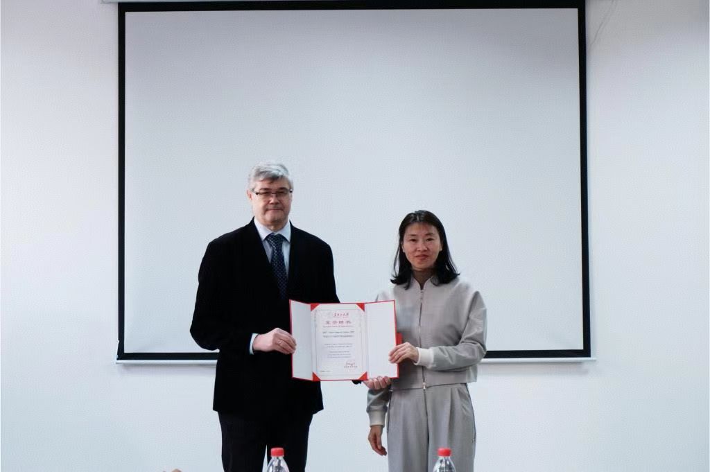 研究生院院长罗跃军为Dmitry Olegovich Zharkov教授颁发“生态学学术学位博士研究生合作导师”聘书。