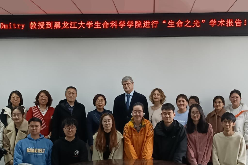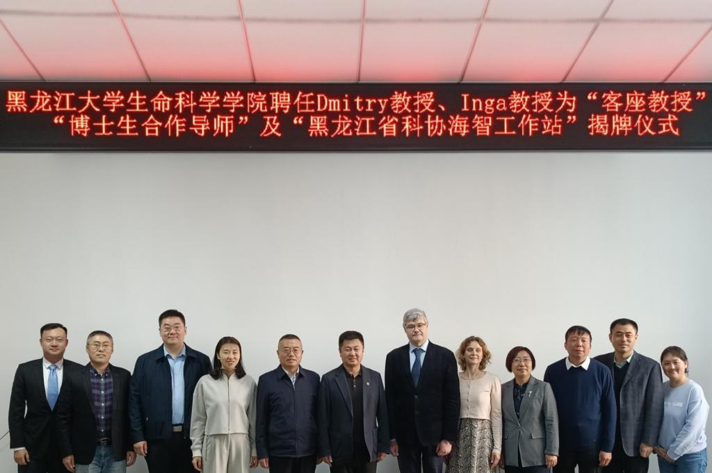 副校长李卓、Dmitry Olegovich Zharkov教授、科学技术处副处长沈中辉、黑龙江省蛋白质组学学会理事长李海英共同为黑龙江省科协海智工作站揭牌。