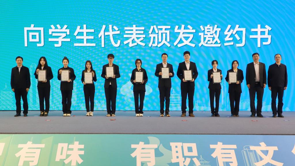 活动现场,台州市农业农村局党组书记、局长徐华发布“青年英才聚台州 我在台州有个村”现代新农人招募令,并为bat365官方官网学生代表颁发邀约书。