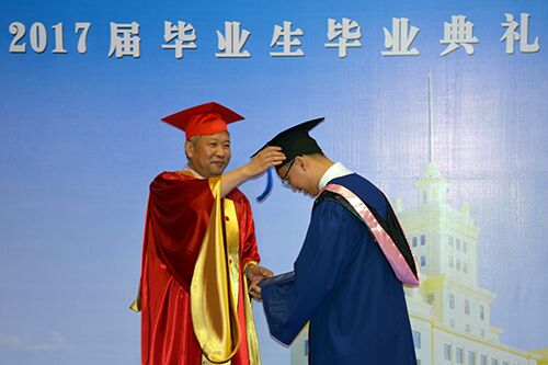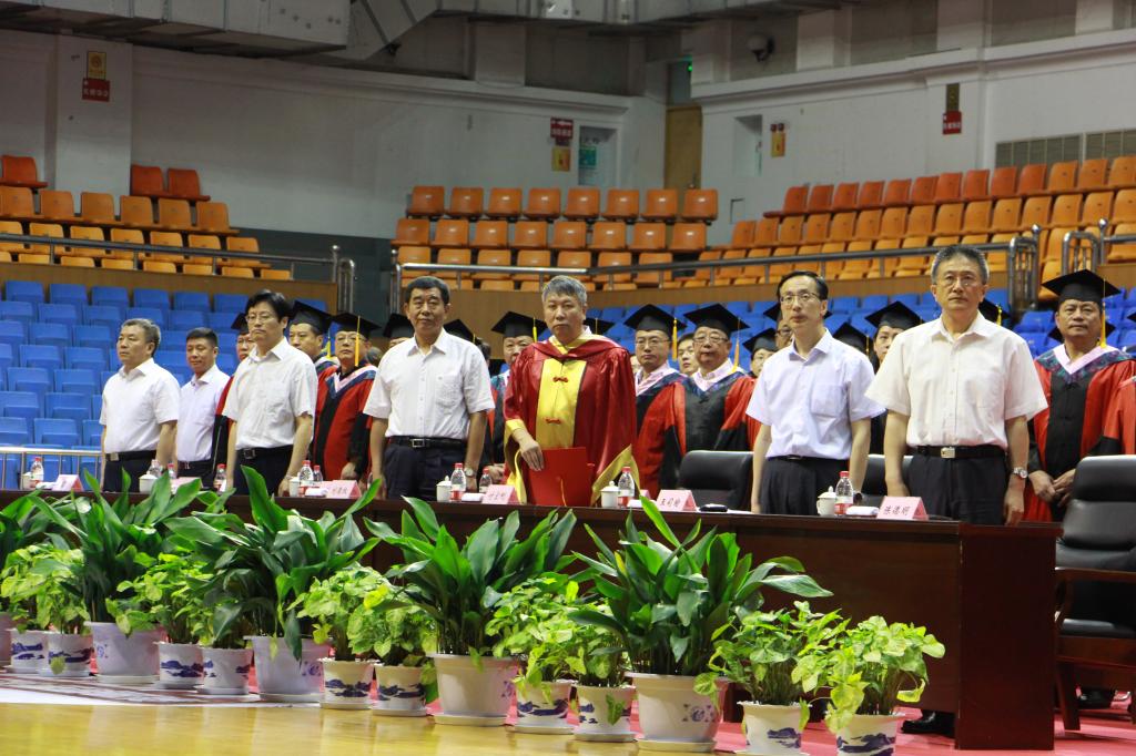 在雄壮的国歌和激昂的校歌中,国旗和校旗冉冉升起,2017届毕业生毕业典礼正式开始。