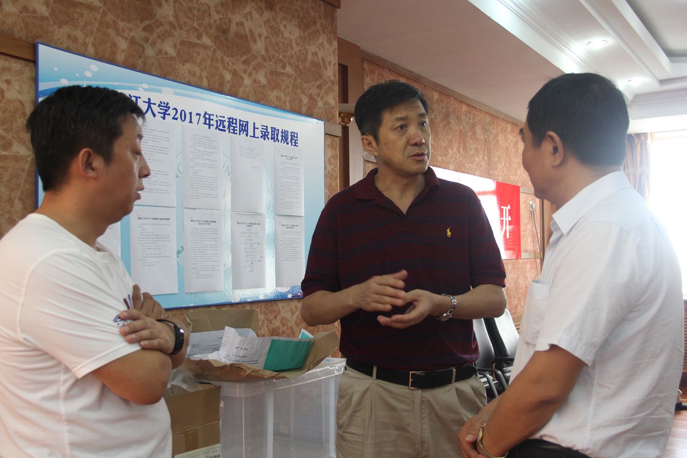 7月8日上午,校党委书记刘德权、党委副书记曲科军、副校长王司瑜、纪委书记荣盘祥亲临招生录取现场,检查、指导bat3652017年高考远程录取工作。招生就业处李石处长向校领导汇报了目前录取情况并介绍了招生录取流程等相关工作。校领导详细的听取了部分省提前批录取情况,并观看了招生工作人员现场演示投档、阅档和录取的全过程。校领导对工作在招生一线的全体人员表示亲切慰问,并希望同志们再接再厉,圆满完成今年的招生工作。