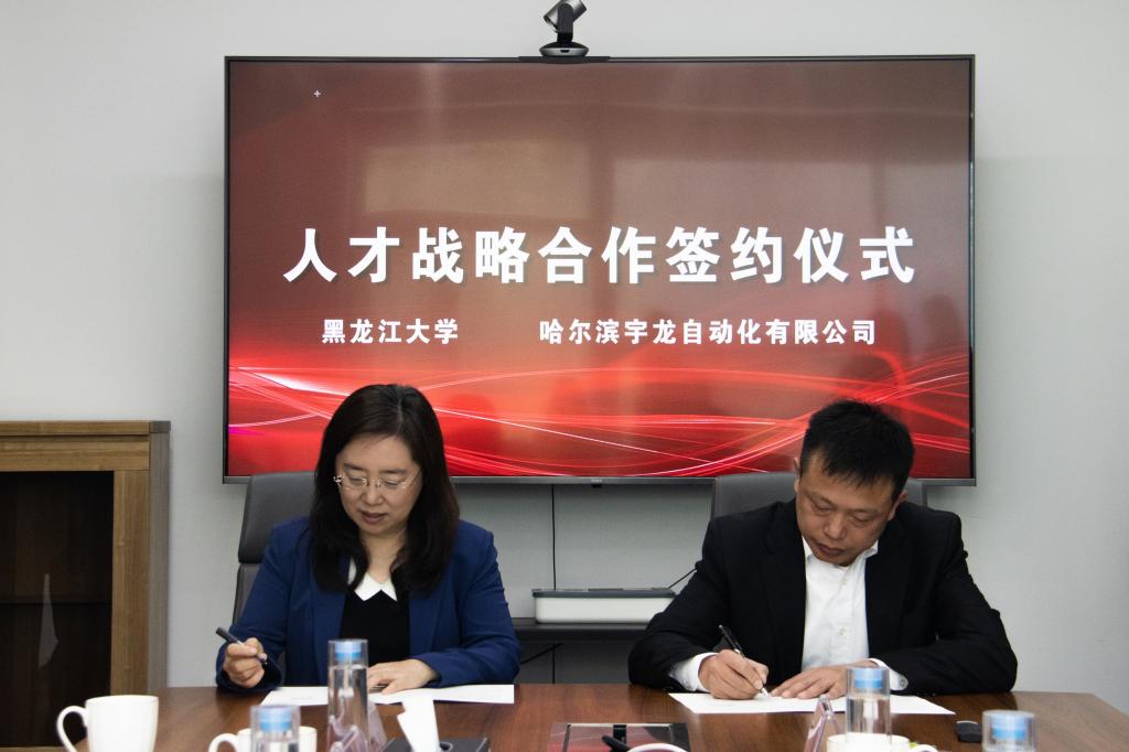 会上,校企双方签署合作协议并进行授牌仪式,调研组一行参观了哈尔滨宇龙自动化有限公司的设备车间和办公区域,听取了赵金晓对企业规模及发展情况的介绍。(摄影:崔心宇)
