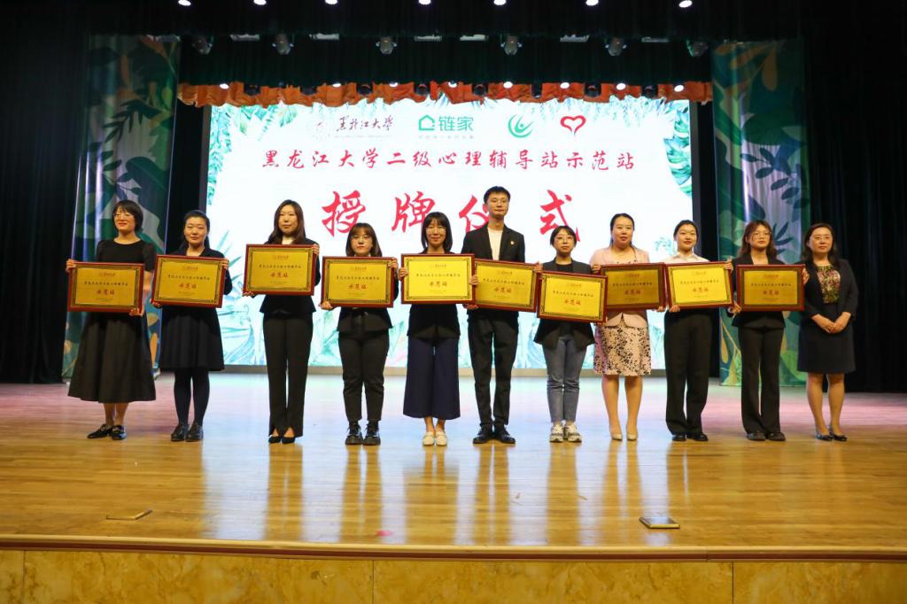 闭幕式上进行了二级心理辅导站示范站授牌仪式,丁宏副书记为西语学院、新闻传播学院等10家获得二级心理辅导站示范站的学院授牌。
