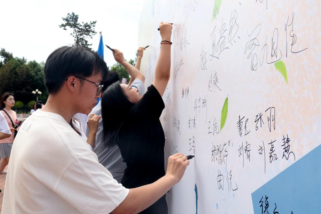 丁宏在活动上讲话。她指出,今年毕业季期间,学校各部门、各学院竭尽全力推进毕业生离校工作,专门制定了《bat365官方官网2023届毕业生离校工作方案》和《bat365官方官网2023年毕业生离校“十五个一”主题教育活动方案》,本次校园徒步活动是毕业离校教育的重要内容,也是学校举办多年的品牌活动、特色活动,她希望广大毕业生通过此次活动重新感受校园里的一草一木、一人一物,带着黑大人的情怀,带着母校的殷殷嘱托,奔赴人生新的方向,实现新的梦想。她表示,学校将继续坚持“以学生为本”的学生工作理念,围绕推动学生工作高质量发展,围绕服务学生成长成才,创新思想政治教育内容和形式,启动实施“时代新人铸魂工程”,进一步激发同学们的爱党、爱国、爱校情怀,为同学们实现德智体美劳全面发展、全方位成长成才保驾护航。