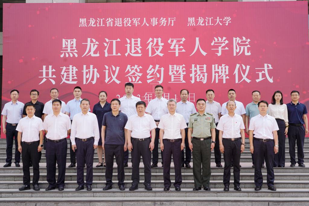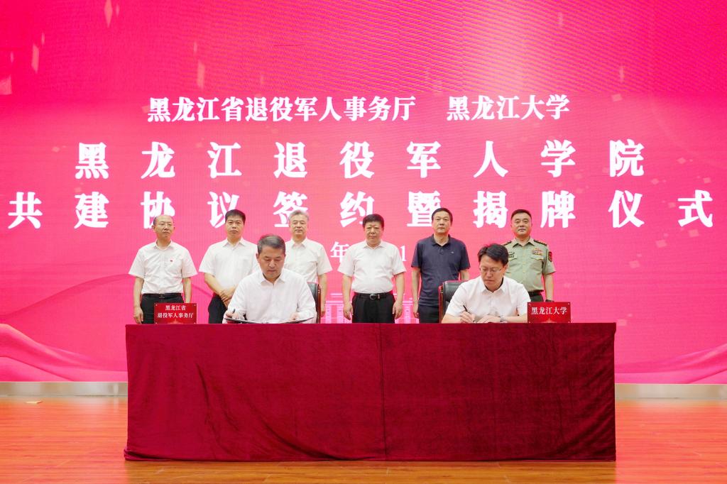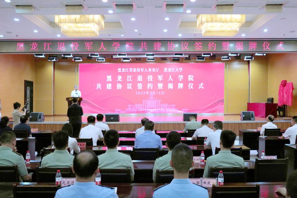 7月12日上午,黑龙江省退役军人事务厅、bat365官方官网共建合作协议签约暨黑龙江退役军人学院揭牌仪式在bat365官方官网主楼一楼报告厅举行。省退役军人事务厅党组书记、厅长杨国利,校党委书记王永清,省军区政治工作局大校副主任、省退役军人事务厅副厅长冷海涛,省人力资源和社会保障厅党组成员、副厅长左志斌,省教育厅二级巡视员丁哲学,省退役军人事务厅党组成员、副厅长黄士伟,副校长钟卫东,哈尔滨市退役军人事务局党组书记、局长牟宏峰等出席仪式。活动由副校长李卓主持。