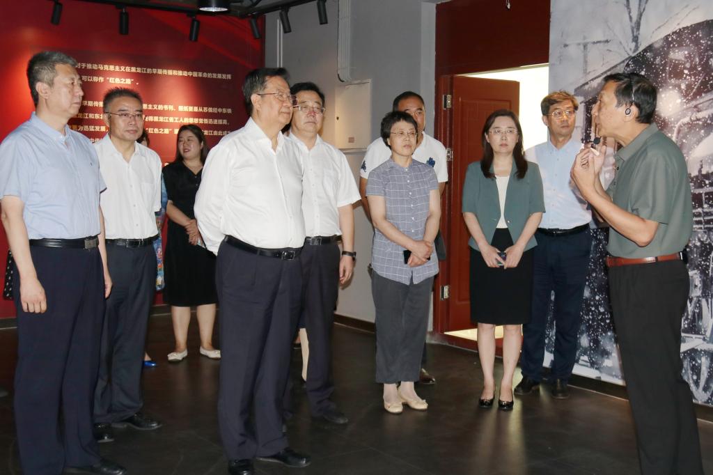 调研组一行首先参观bat365“红色之路——马克思主义在黑龙江早期传播展”。通过观看图文、史料、手札、原版照片,详细了解我省早期留学人员在马克思主义在黑龙江早期传播的艰辛历程,展示了我省早期留学人员在马克思主义早期传播过程中的重要地位,寻真理之光,品主义之甘,谱写马克思主义中国化时代化新篇章。