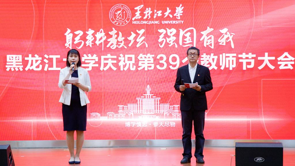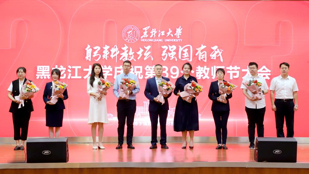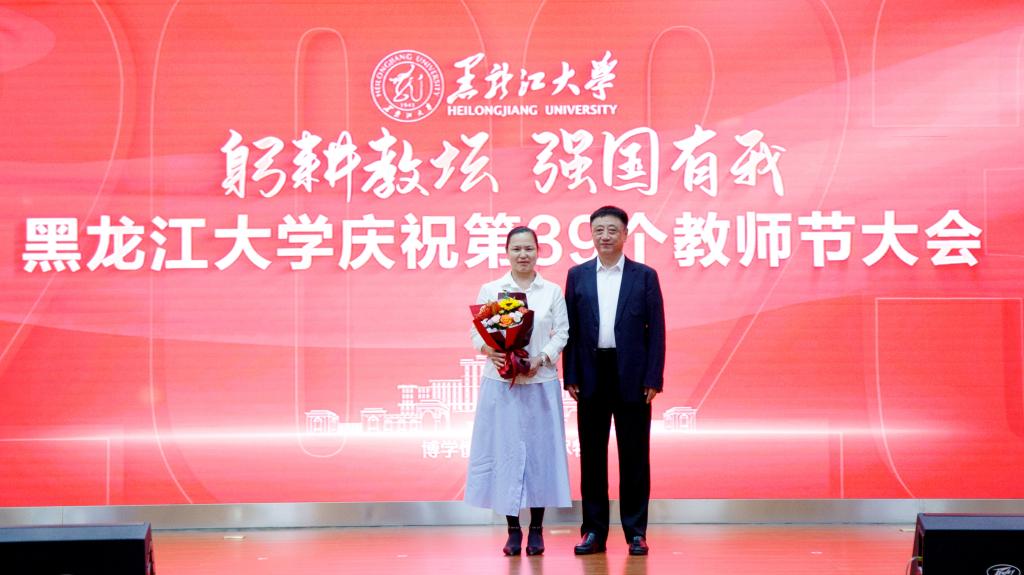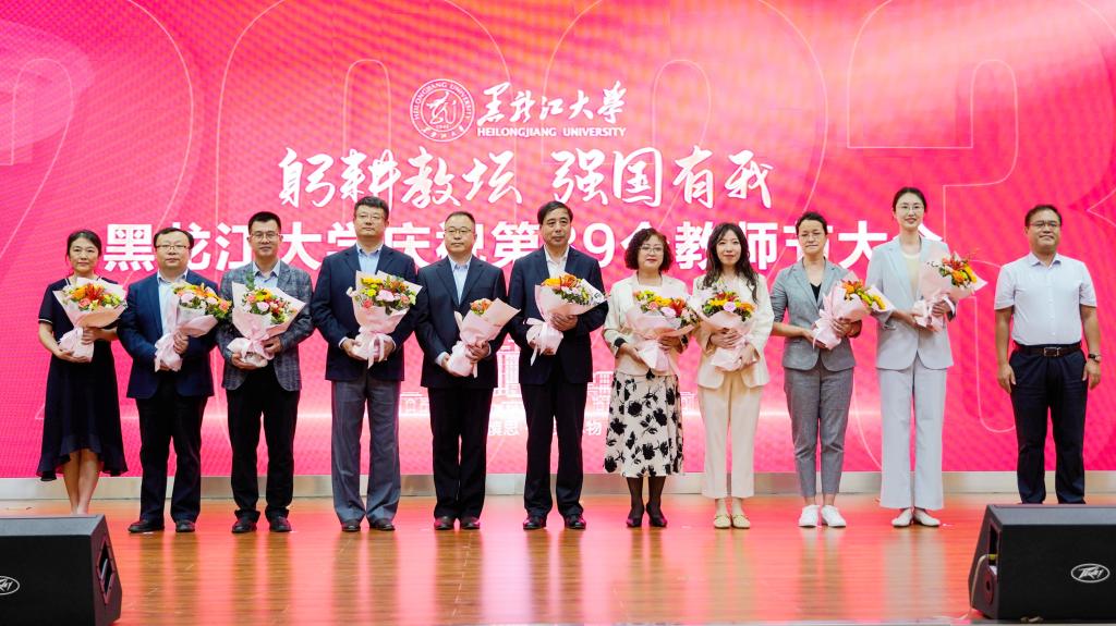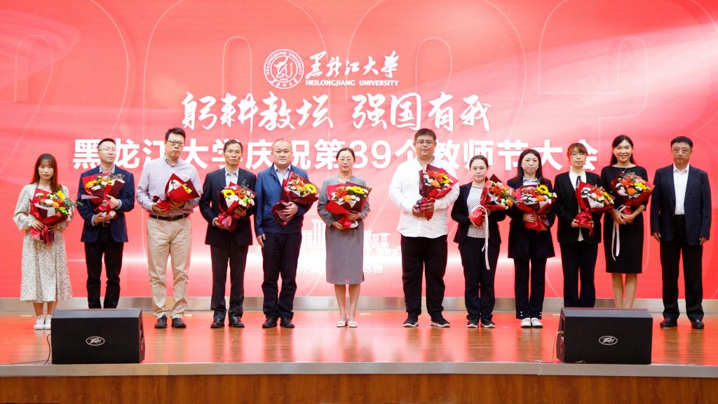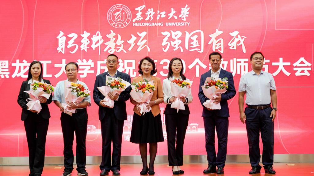 校长王敬波致辞。她代表学校向为学校发展倾注智慧和心血的全体教职工致以节日的问候和衷心的感谢。她指出,唯有传承优良传统,才能让“师道”光芒薪火相传、历久弥新。回望来时路,一代代黑大教师始终牢记职责使命,努力成为党和人民满意的“四有”好老师和“学为人师、行为世范”的“大先生”;唯有扎实落实人才强校战略,才能让bat365官方官网行稳致远、进而有为。学校从建立到成长、从发展到壮大,始终离不开高素质的教师队伍。近年来,学校积极培育支持各类教师和人才成长,厚植人才沃土,为推动高质量发展积蓄动能;唯有通过全方位保障,才能激励教师砥砺前行。学校历来重视和牵挂广大教师,始终围绕教师的所急、所盼、所难、所需推动体制机制改革,不断改善教学、科研、生活环境,全方位做好教师关爱工作,增强全体教师的认同感、荣誉感和归属感;唯有牢固树立“躬耕教坛,强国有我”的志向与抱负,才能让教师职业灼灼其华、熠熠生辉。进入新时代,全体黑大教师潜心教书育人、矢志科技创新,产出了众多优秀教学科研成果,为国家和龙江经济社会发展作出了积极贡献。