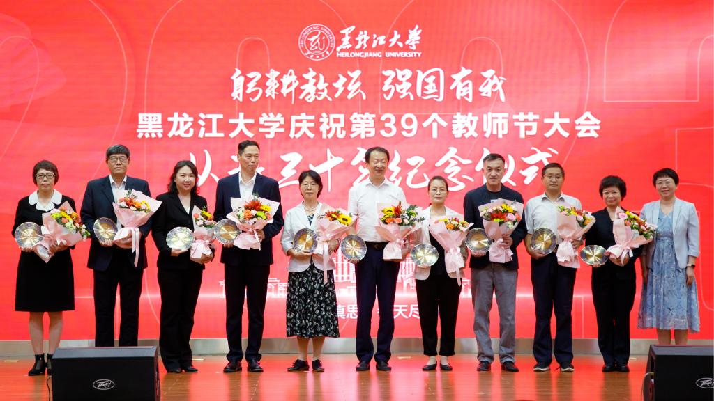 学校82年的办学征程中,一代代黑大人前赴后继、砥砺前行,在从教三十年、从教四十年教师纪念仪式及退休教师荣休仪式上,校党委书记王永清、校长王敬波为教师代表颁发纪念奖牌、奖杯和鲜花,向他们表达了最崇高的敬意,并送上最真挚的祝福。