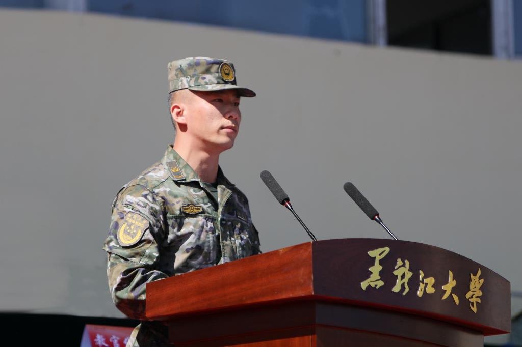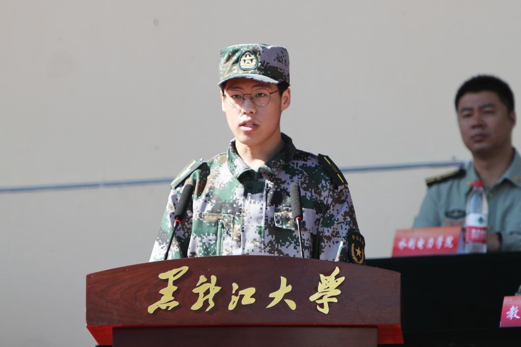 电子工程学院2023级学生王宏运代表全体参训新生发言。他郑重承诺,在训练过程中将服从命令,听从指挥;将锻炼意志,苦练基本功;将珍惜军训机会,高标准要求自己;将从军训中学知识、磨意志、强体魄、争当优秀学员。